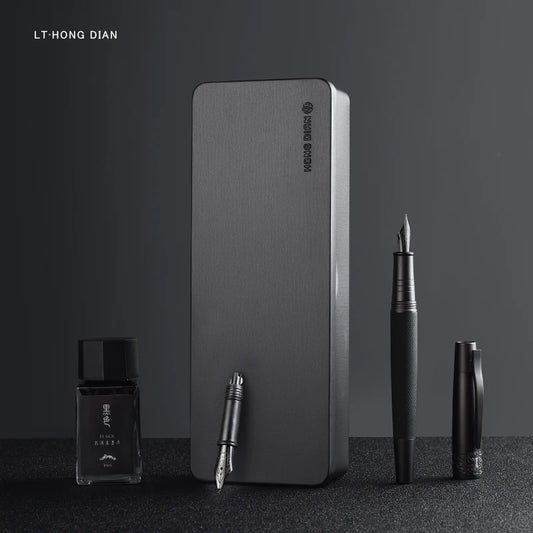LT Hongdian 6013 Black Metal Fountain Pen Titanium Black Men's Business EF/F/ Curved Nib Rotating Pen Cap Office Gift Ink Pen