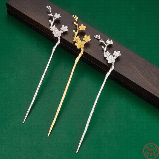 [Ornament] Korean Traditional Women's Hairpin S925 Sterling Silver Hair Stick Plum Blossom