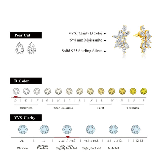 [Earrings] AnuJewel 10K Gold Post 5/2/1.2ct Pear Cut Moissanite Stud Earrings Anti-allergy Eearrings For Women Jewelry Wholesale
