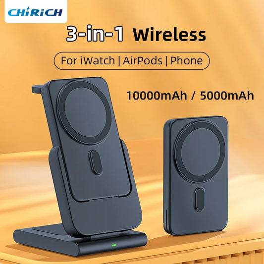 [Smart Gear] 5000mAh 3 in 1 Wireless Charger For Apple Watch 10000mAh Magnetic Power Bank Auxiliary External Spare Battery For iPhone Airpods