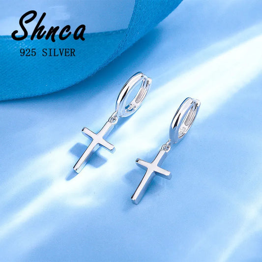[Earrings] Hot Sale Punk New Solid 925 Sterling Silver Cross Drop Earrings For Women Girl Student Jewelry XE005