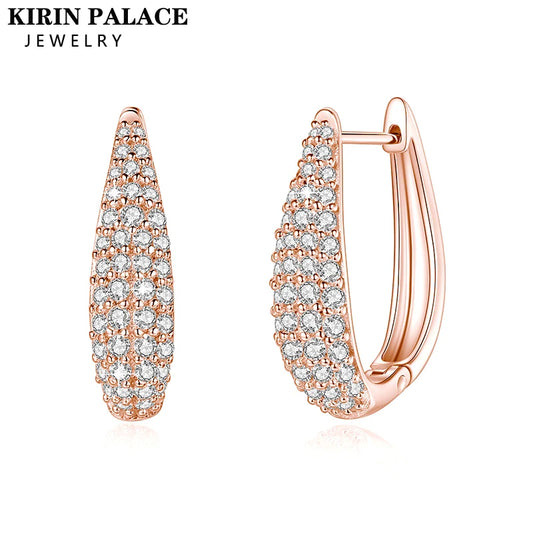 [Earrings] Kirin Palace 2.5CT D Color Moissanite Hoop Earring Rose Gold Real 18K 750 14K 585 Gold Earrings for Women Sparkling Fine Jewelry