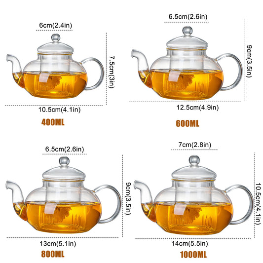 [Tea Ware] 400ml To 1000ml Filterable Teaware Home Heat-resistant Glass Teapots Durable Kitchen Glass Flower Tea Pot Heatable Glass Tea Set