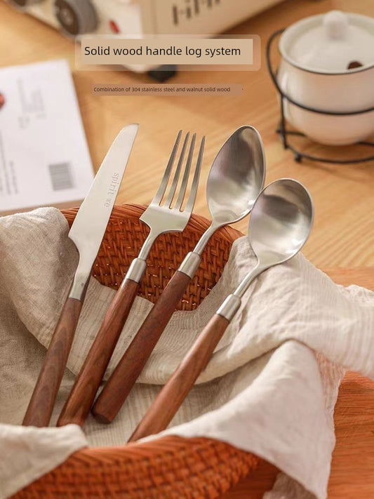 [Cutlery] Spork Tableware 304 Stainless Steel Adult Walnut