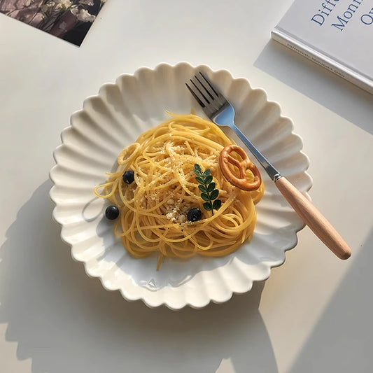 [Plates] Ahundjiaz-Nordic Pure White Ceramic Plate Set, Dessert, Breakfast, Pasta, Western, Home Tableware, Kitchen Plates Sets