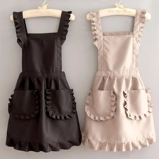 [apron] 1Pcs Cute Korean Style Apron Female Nail Shop Kitchen Coffee Overalls Home Cooking Cleaning Sleeveless Apron