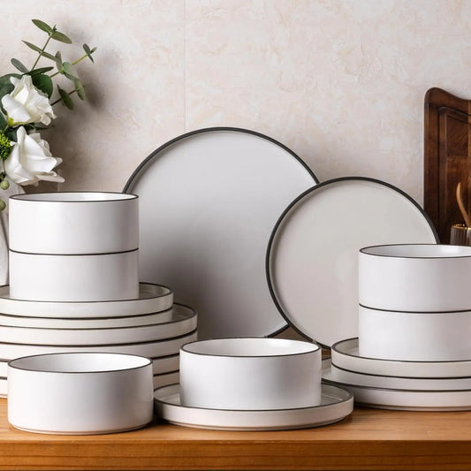 [Plates] Ceramic Dinnerware Sets of 6, High Edge Stoneware Plates and Bowls Set, Oven & Dishwasher & Microwave Safe Dishes Set