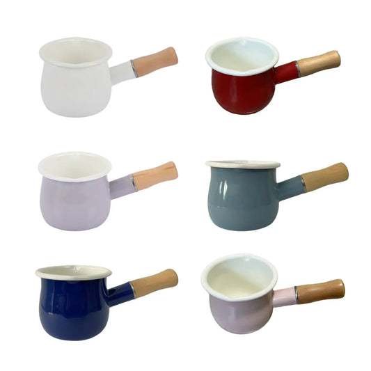 [cookware] 500ml Enamel Milk Pan Small Food Warmer Multifunctional Small Cooking Pot Small Enamelware Butter Warmer with Wooden Handle
