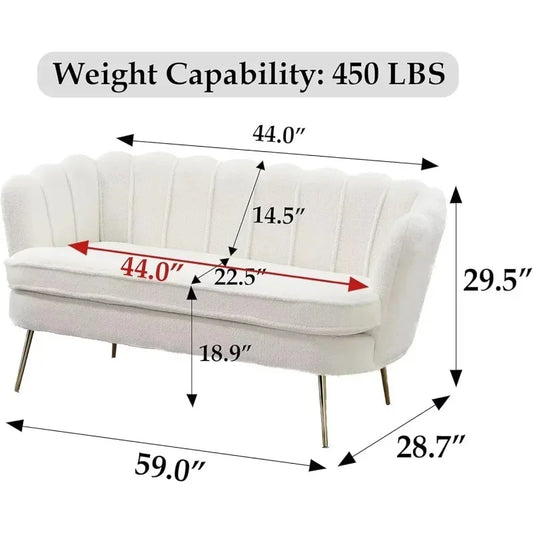 [sofa] Ivory White Small Loveseat Sofa with Gold Metal Legs for Living Room Bedroom Office