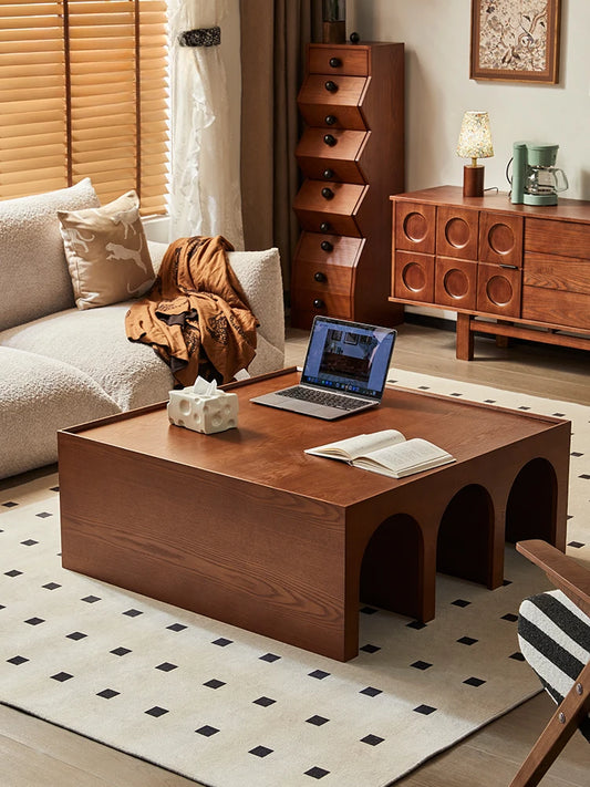 [Table] 1French coffee table retro multi-functional living room display cabinet solid wood small apartment large desktop low coffee tabl