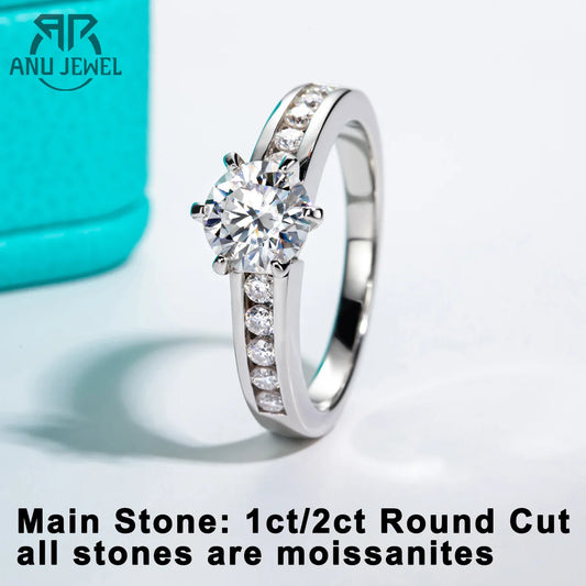 [rings] AnuJewel 1ct/2ct D Color Moissanite Engagement Rings For Women 925 Sterling Silver Promise Wedding Rings Fine Jewelry Wholesale