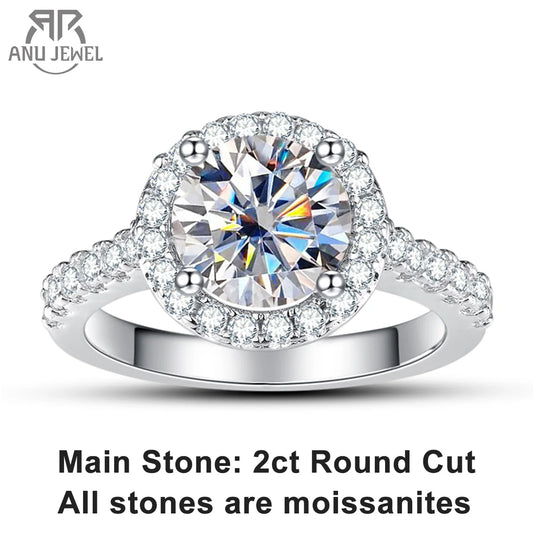 [rings] AnuJewel 2 Carat D Color Moissanite Halo Engagement Ring For Women 925 Sterling Silver Wedding Rings Fine Jewelry Wholesale