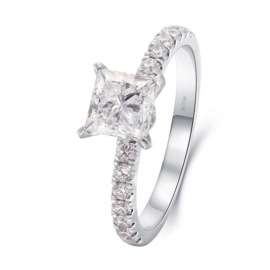 [rings] 1ct DEF VS-VVS Princess Cut HPHT CVD Lab Grown Diamond Real Solid 14K Gold Engagement Wedding Ring for Women IGI Certificate